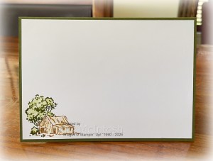The image panel is attached to the card front using dimensionals. I stamped the greeting from the Unbridled Beauty stamp set onto Basic White card using Early Espresso ink and fussy cut it. The greeting is attached to the card front using dimensionals where necessary. To decorate the inside of the card, I stamped the house image from the Unbridled Beauty stamp set onto the lower left hand corner of Basic White card using Pecan Pie ink. I masked the house image and stamped the tree image from the same stamp set over the left hand side of the house image using Mossy Meadow ink. I removed the mask and used a Blender Pen to colour the house and tree image. I bought this stamp set because I thought it would be a great addition to my Memory Keeping stash but I think I am probably going to use it a lot more than I thought in my card making. I’d love to hear what you think.