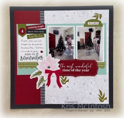 Today’s pages show off the Christmas celebration at my Mum’s Nursing Home. We had a lovely afternoon being entertained by an amazing group of young people who sang and danced for an hour, followed by a wonderful dinner. I used Layout 1 from the Keeping Traditions Scrapbooking Workshop Kit. I had the main Designer Series Paper panels ready to go so I only had to add my photos and the embellishments.