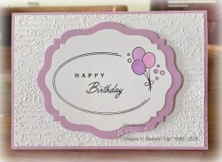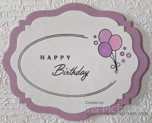 I stamped the oval shaped image from the Addressed to You stamp set onto Basic White card using Memento Tuxedo Black ink. I stamped the balloon image from the same stamp set into the space on the oval also using Memento Tuxedo Black ink. I also stamped the “happy” and “birthday” greetings from the Addressed to You stamp set using Memento Tuxedo Black ink.