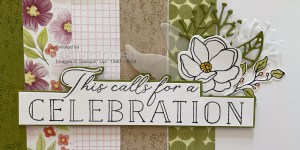I used various images and dies from both the Simply Beautiful Bundle and the Beautifully Celebrated Bundle to create the arrangements around the photo, title and journaling. The images were stamped in Memento Tuxedo Black ink and the dies were cut randomly from Old Olive, Basic White & Vellum cardstock (retired) although you could use the Vellum Specialty Paper. I also sponged the outside edges of the page using Crumb Cake ink. The title greeting from the Beautifully Celebrated stamp set is stamped onto Basic White card using Memento Tuxedo Black ink. I fussy cut around the title and attached it to Old Olive card and fussy cut again to give a little more definition. While this is probably not my usual style of Memory Keeping, I am very happy with the outcome. So thank you Stampin’ Up! for the inspiration.