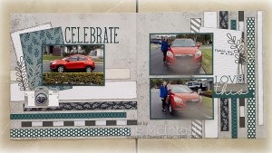 These pages show off some photos of Elyssa with the car she bought after she got her licence. I used a layout I created following Janice Gilhooley’s instructions for the Make A Memory Scrapbook Kit (last chance). I have had these pages created for a while and love the colours and the way they are put together.