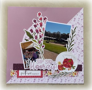 Today I have a layout to share which shows off some photos from our recent visit to Gartelmann Winery when we were staying at Belmont in New South Wales. I used Layout 2 from the Celebrate Together Scrapbooking Workshop Kit (last chance) to create the pages. I didn’t change anything in the instructions, except I did forget to add the scalloped trim on each page.