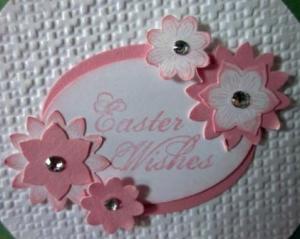 I sponged the edges of the stamped images with Pretty in Pink ink to add a bit more colour. Then I simply attached the flowers around the greeting and added some small and medium Basic Rhinestones to the flower centres.