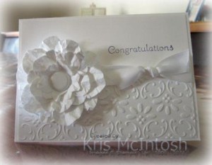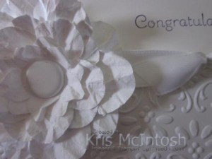 You can see the texture in the flower and the embossing. I love this card and think it would make a very elegant Wedding card. How about you? What do you think?