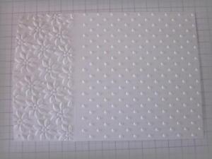 I embossed the Whisper White card using two embossing folders – Perfect Polka Dots and Petals-a-Plenty. To do this, lay the cardstock into the folder so that it is crossways and then butt the other folder up to it and run through the Big Shot.