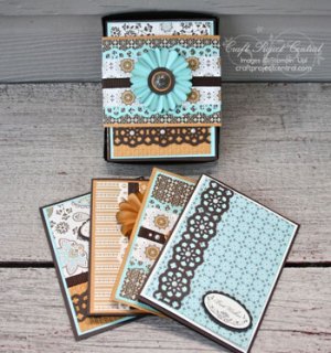 Here is another great tutorial from Craft Project Central. This fabulous tutorial was designed by Anne Marie Hile. The cards show off the Spice Cake Designer Series Paper to perfection and the presentation box is adorable.