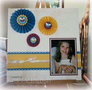 I really like the sketch this month at Craft Project Central, however I used the sketch to create a scrap page instead of a pretty card. This page also features my first attempt at making the paper medallion “lollies” that are featured everywhere on the net at the moment.