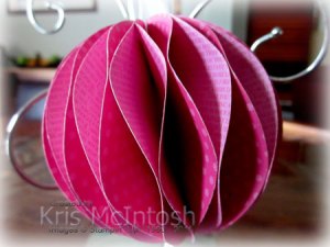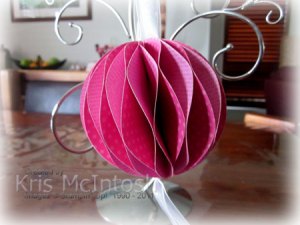 Sooo… the first thing I am going to share with you for this challenge is an ornament. Lynn Pratt shared a honeycomb ornament she had made following the tutorial at Splitcoast Stampers and I thought it was beautiful. She even shared a free template. Then Lisa Lange shared one she had made using circles and it looked stunning as well, so here is my version of the honeycomb ornament. I used two sheets of Designer Series paper from the Brights Patterns Designer Series Paper Stack. My ornament is made from 18 3-1/2″ circles. Basically I followed the information Lynn shared to create my ornament.