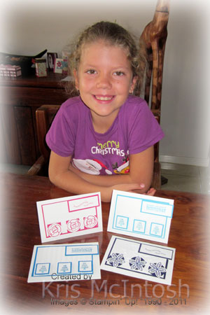 She had such fun picking her colours and images. At 7 she has a fairly good eye for what she likes and I think her cards turned out really lovely.