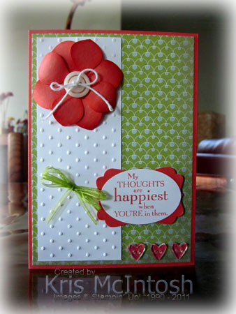 Love this Kris. Your flowers are always so pretty & elegant. The embossed white just ties it all in together pefectly