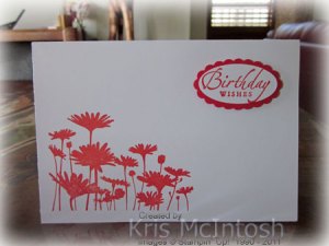 Our first card was a single layer card. We used the flower image from the Upsy Daisy stamp set and the greeting of their choice from the Sincere Salutations stamp set.