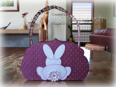 And just to show you how truly cute it is, here is the front decorated using the Bunny Behind from Kim Score’s blog. I have to admit this is my favourite punch bunny and I use it a lot.