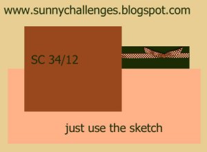 I have set the challenge at Sunny Challenges and Creations this week.  I have provided a sketch and you can do with it what you wish.  Use any stampset, colours or techniques that you wish.  You may create a card, scrapbook page or 3D item as long as you use the sketch.