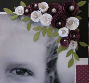 I arranged the flowers and leaves over the top right hand corner of the photo and added Basic Pearls and Basic Rhinestones to the flower centres.