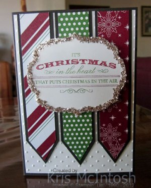 Trad Chrissy colours and bling…you cannot go wrong!!! Love the “reverse” banners too. I have not inked this stamp yet but it looks so grand on a framelit. GORJUS card Kris.
