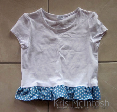 I made Abi a skirt and then cut down a plain white T shirt and added a frill to match the skirt. I love how it turned out and I know Abi will love that “twirly” skirt.