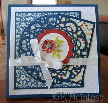 Great colour combo. Love the lacy layer. Thanks for playing at Try Stampin’.