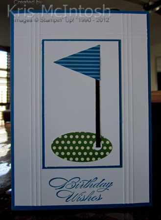 Crackerjack job Kris on both cards. I love them!!!! My FIL is a MAD golfer, so I may have to storethis idea away for August. The set you ised for ur Mum’s card I haev had on my wishlist for a long time. Love the layout and the dry embossing. ooxx