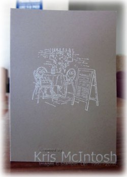 Since I have been taking a break from classes, I had time to clean my office work space and I found some Crumb Cake Note Cards. These note cards are gorgeous and I wondered what they would look like if I stamped the Mediterranean Madness images using Versamark ink and then embossed the images using White embossing powder.