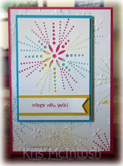 When I look at this card it seems to have a lot going on and is certainly very bright just like the fireworks on New Year’s Eve. So Happy New Year everyone. Let’s make it a great one.