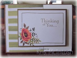 I inked the greeting from the Thoughts and Prayers stamp set using Soft Suede ink and stamped onto the other 3″ x 4″ card. The card is attached to Soft Suede card and the the card front using dimensionals. To decorate the inside I used another 3″ x 4″ card from the collection and fussy cut out one of the flower images and attached it to the lower left hand corner of Whisper White card before attaching it to the inside of the card.