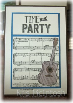 My eldest grandson, Ethan, turns 11 today. When I look at how quickly my grandchildren are growing up, it makes me wonder where all that time has gone. He is a lovely boy and a very talented guitar player, so I had to make something with a music theme. The sketch at Freshly Made provided the inspiration for this card. I stamped the Sheet Music Background onto Whisper White card using Memento Tuxedo Black ink and attached it to Pacific Point card. I stamped the greeting from the Confetti Celebrations stamp set onto Whisper White card using Memento Tuxedo Black ink and attached it to the Pacific Point card.