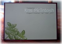 To decorate the inside of the card, I stamped the leaf image from the Oh So Eclectic stamp set twice onto the lower left hand corner of Very Vanilla card using Old Olive ink.  I stamped the leaf image once more onto Very Vanilla card and cut it out using the matching thinlit die.  The additional leaf is attached over the stamped leaves before attaching to the inside of the card.
