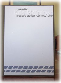 I used the border die from the Swirly Bird Framelit Dies to cut Soft Suede card, I only wanted to create a semi-rounded edge for the bottom of my card. I embossed the card using the Softly Falling Embossing Folder before attaching it to the bottom of the stamped card. I stamped the long border image onto a strip of scrap Whisper white card using Wisteria Wonder ink.
