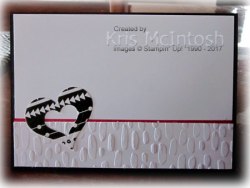 Recently I shared this card with you that I created for my Technique Class in October? Well, when I created that card I had a couple of pieces of card decorated with Pick a Pattern Washi Tape left over. So I decided to create another card. I embossed Whisper White card using the Sweetheart Embossing Folder and attached it to scored and folded Basic Black card. I cut a layer of Whisper White card and Basic Black card and attached them together.