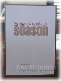 To decorate the inside of the card I stamped the “tis the Season” greeting using Cherry Cobbler ink.  I then coloured the “season” using a Crumb Cake Stampin’ Write Marker.
