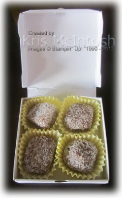 I love the Mini Pizza Boxes in the Holiday Catalogue and was so excited to know that they will be carrying over. They are a great size for holding 3″ x 3″ cards (and by the way the 3″ x 3″ envelopes are carrying over too) but they are also food safe so you can add your favourite chocolate to make an edible gift as well. I used these Mini Pizza Boxes to hold some Rum Balls that I made for the ladies who attended my Christmas celebration and they all loved them – the boxes I mean, not sure about the Rum Balls.