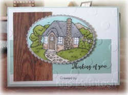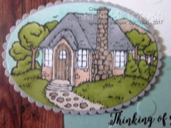 …is a new Hostess stamp set in the 2018 Occasions Catalogue. As part of my pre-order I was able to earn this stamp set and I have been having a lovely time colouring in this gorgeous cottage. This is the first actual card I have created using this stamp set. I stamped the greeting from Colourful Seasons onto Pool Party card using Early Espresso ink and attached it to Whisper White card. I embossed the Whisper White/Pool Party card using the Basic Polka Dot Embossing Folder.
