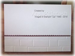 I kept the inside of the card simple by punching a piece of Rich Razzleberry card using the Decorative Ribbon Border Punch.  The punched piece is attached behind one long edge of a strip of Whisper White card embossed using the Brick Wall Embossing Folder before attaching to the inside of the card.
