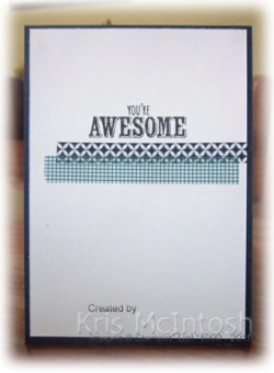 To decorate the inside of the card, I stamped “you’re awesome” from the Epic Celebration stamp set onto Whisper White card using Memento Tuxedo Black ink.  I attached a piece of each of the Washi Tapes used on the card front underneath the greeting.