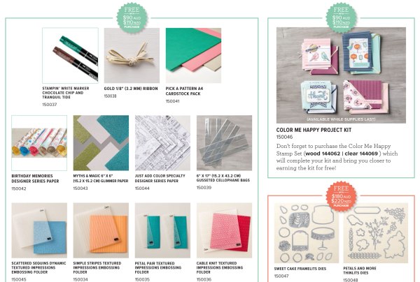 From today Stampin’ Up! has made available a number of current catalogue products to be selected Free with a qualifying order until the end of Sale-a-bration on the 31st March, so don’t delay in placing your order and selecting your free items. Please note that in order to receive the product free, you need to use the Sale-a-bration item number which you can view here or your can download the brochure here.