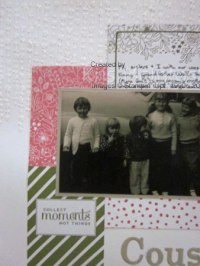 This is another of the photos that my Mum and Dad gave me to start documenting our family history. It’s a photo of myself with my sisters and my cousins. We are standing in front of our grandparents Holden station wagon. Unfortunately I don’t know exactly when this was taken but judging by my youngest sister, I would estimate that I am around 8 years old in this photo. To decorate the Whisper White 12″ x 12″ card, I used one of the Sweet Soiree Decorative Masks and Shimmery White Embossing Paste to decorate across the top of the page.