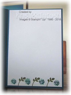 To decorate the inside of the card, I stamped the leaf and flower image across the bottom of Whisper White card using the same inks. By stamping once and then lifting and moving the Stamparatus window one notch and stamping again you get the images spaced perfectly and in a perfect line. You do need to be careful that you are not moving the card you are stamping on, because it won’t line up properly if you do (as you can see by these images).