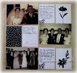 Today I am sharing with you a very quick and easy page to create using the Petal Passion Memories and More Card Collection. This beautiful pack of gorgeousness will be retiring with the release of the new Annual Catalogue and I must say I haven’t used these cards as much as I should. These photos show my Aunt’s Wedding photos. This is my mother’s sister and my Mum was the Matron of Honour. I love the photo in the pocket at the bottom on the left.