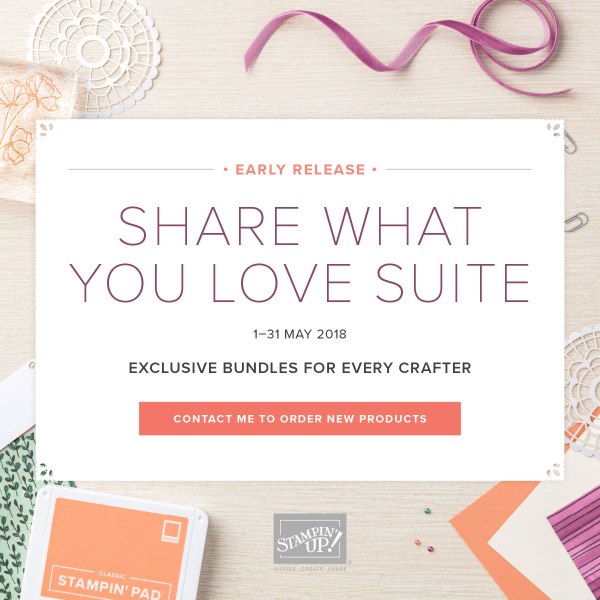 This week demonstrators can pre-order certain products from the Annual Catalogue to be released in June. Soooooo exciting! One of the things I love about being a demonstrator is early access to new products. However, tomorrow you get to share some of that excitement with me, because tomorrow you can pre-order from the gorgeous Love What You Do product suite from the upcoming Annual Catalogue. This is an amazing range of products. You can purchase from four bundles – Just Getting Started, A Little More Please and Gotta Have It All, plus a bundle of ink pads in the new 2018-2020 In-Colours. So everyone should be catered for from those that are just beginning their love of Stampin’ Up! to those of you who are already avid fans. Personally, I believe, if you “Gotta Have It All” you might be just as well to sign up as a demonstrator. If you need any information about this, please do not hesitate to contact me.
