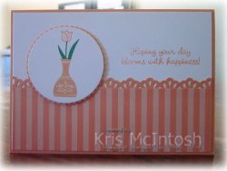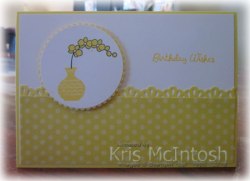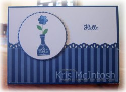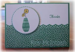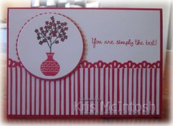 I created each card by punching a strip of card using the Decorative Ribbon Border Punch and attaching behind a co-ordinating piece of the Designer Series Paper. I attached the designer series paper to Whisper White card and stamped a greeting from the Varied Vases stamp set using the co-ordinating ink.