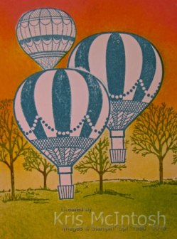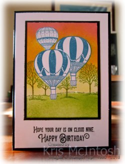 To decorate the inside of the card, we stamped a small balloon onto the lower left hand corner using Pacific Point ink and covered it with a post-it-note mask. We stamped another small balloon and covered it with a post-it-note mask before stamping the third balloon.
