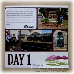 My husband and I were lucky enough to take our two eldest granddaughters on a trip in our caravan to Cooktown during the last school holidays. We had an amazing time, saw lots and spent a lot of time together on our long travel days. I thought I should scrap these memories before I forgot all the details. Today’s pages show the title page and the first day of our trip.