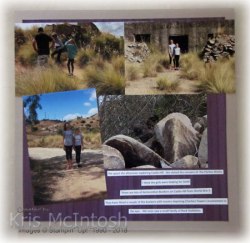 Today’s pages showcase photos of our day out and about in Charters Towers. We spent the morning visiting the Columbia Poppet Head, the Venus Gold Battery and the Miner’s Cottage. I added the photos to the pocket page and used one of the Delightfully Detailed Memories and More cards for the journalling. I cut the title from Blackberry Bliss card using the retired Little Letters Thinlit Dies. These dies do not contain numbers, but a little trimming of the “B” created my number 3. I also stamped the lower right hand corner using one of the sayings from the retired Let’s Get Away stamp set using Memento Tuxedo Black ink.