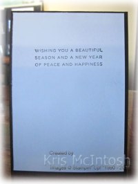 To decorate the inside of the card, I stamped another of the greetings from the Hearts Come Home stamp set using Memento Tuxedo Black ink. The photo of the inside of the card is really not very good but I took it this morning and I can’t seem to get the light right. So, although it looks like the card is blue, it is really white.