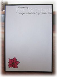 To decorate the inside of the card, I stamped the poinsettia flower from the Timeless Tidings stamp set onto the lower left hand corner of Whisper White card using Memento Tuxedo Black ink. The images is coloured using the Real Red Stampin’ Blends and the Dark Daffodil Delight Stampin’ Blends.
