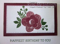 The second card is for the casual stamper and this time after stamping the image (using Merry Merlot and Mossy Meadow inks), I cut it out using one of the Rectangle Stitched Framelit Dies. I attached the image panel to a rectangle of Merry Merlot card cut using the same dies, and then scored and folded Thick Whisper White card.
