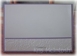 The embossed card has a narrow strip of Highland Heather attached to one long edge before the panel is attached across the bottom of Whisper White card.