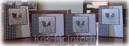 I liked this card very much and created four cards altogether using the same images. For each of the cards, I coloured the roosters using different combinations of Smoky Slate, Cajun Craze, Daffodil Delight, Crumb Cake and Balmy Blue Stampin’ Blends.