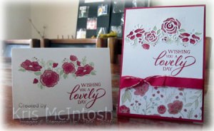 The greeting from the Forever Lovely stamp set is stamped using Lovely Lipstick ink as well. A simple card but sometimes it takes simple to get your brain into action to start thinking about all the ways you can use the images in a stamp set.