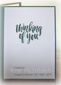 To decorate the inside of the card, I stamped “thinking of you” from the Rooted in Nature stamp set onto Whisper White card using Shaded Spruce ink.
